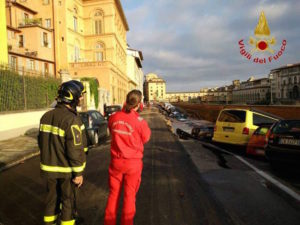 Buraco engole carros junto à Ponte Vecchio Florença Itália